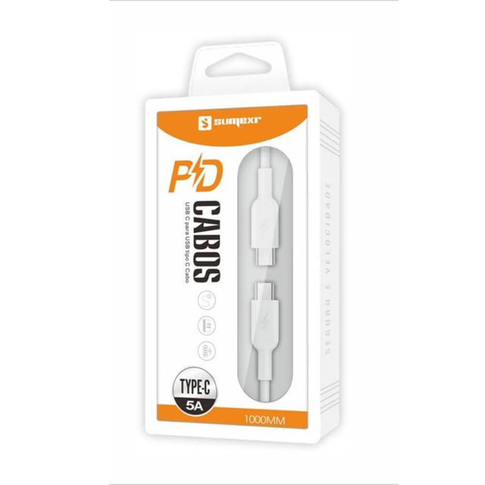 Cabo de dados USB Tipo-C para Tipo-C Sumexr SX-B33 Carga Rápida, 1 Metro, Branco